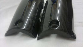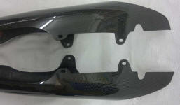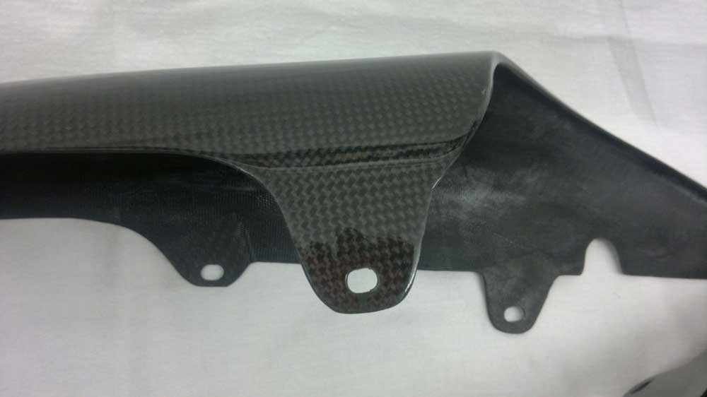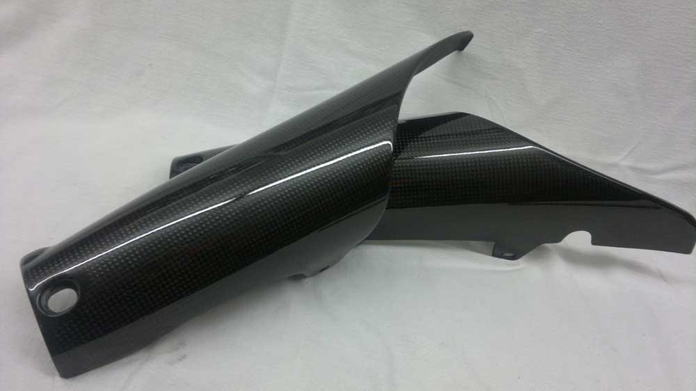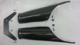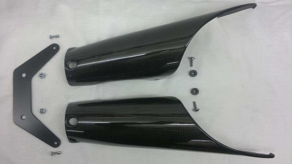 Yamaha MT-01 Carbon & GFK Hitzeschutzalle Baujahre ProduktbilderHitzeschutz 2-teilig incl. schwarz lackiertem Aluminium-Haltesatz für die Yamaha MT-01 (alle Baujahre). Der Hitzeschutz ist erhältlich mit einer Wandstärke von ca. 1,0 -1,2 mm ( ca. 2 Lagen Sichtcarbon hochglanz). oder GFK (Glasfaserverstärktem Kunststoff) zum lackieren in Fahrzeugfarbe. Die Befestigung erfolgt durch das mitgelieferte Trägerelement aus Edelstahl an den original Befestigungspunkten der Beifahrerfußrasten. Wahlweise mit und ohne Montage der Beifahrerfußrasten. Die Innenseite ist mit einer hitzebeständigem 2-Schicht Isolierung ausgekleidet. Wichtigste Kundenvorteile